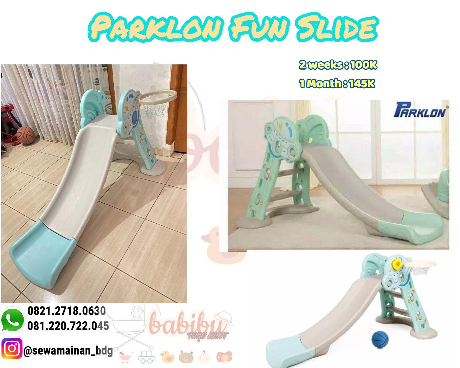 Perosotan dari merk parklon dengan desain lucu dan menggemaskan, dilengkapi dengan ring basket. Pastinya membuat si kecil happy bermain di rumah🥰