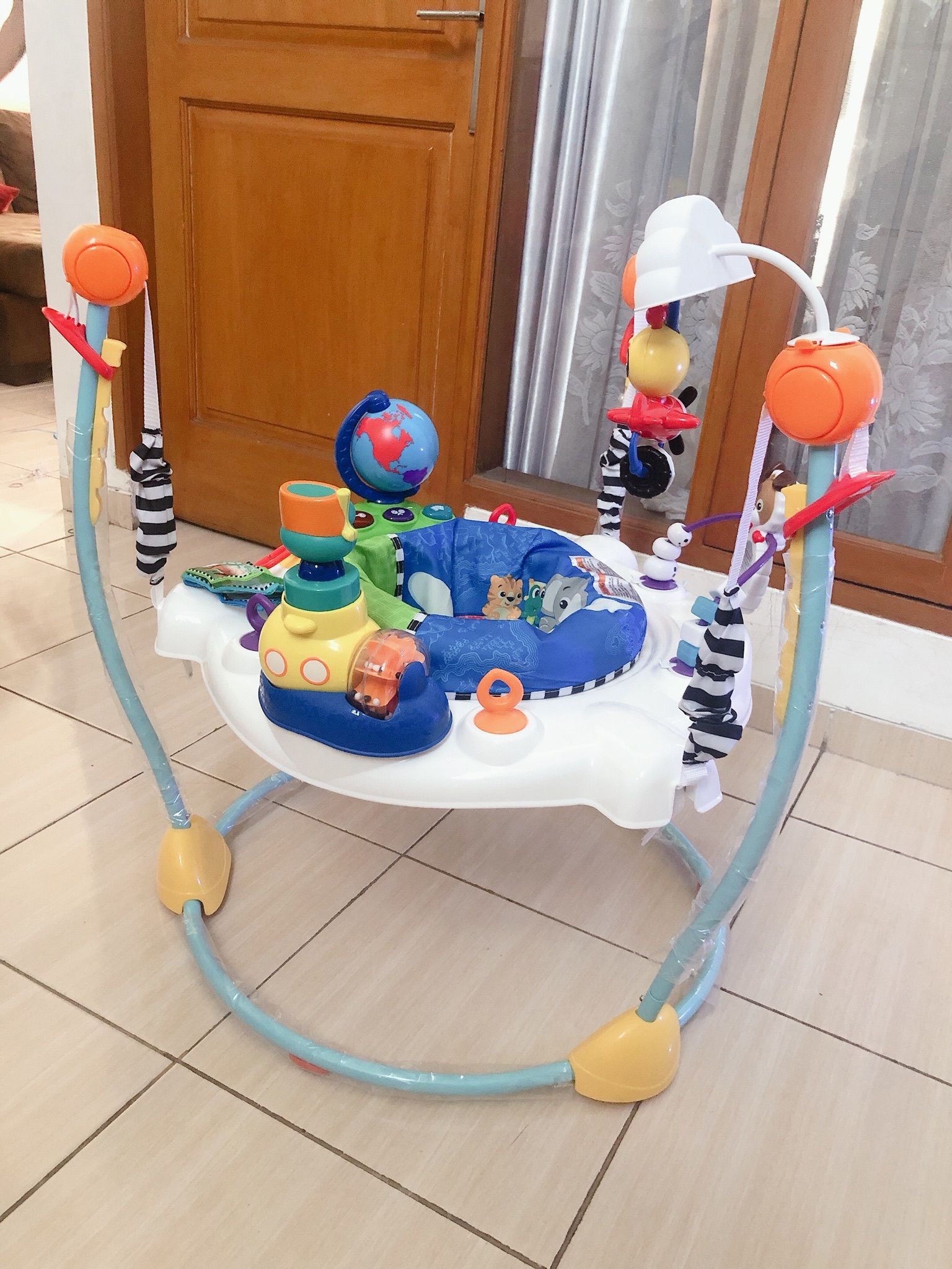 Jumperoo adalah salah satu mainan tergavorit untuk anak yg mau mulai belajar berjalan. Baby Einstein Discovery Jumper adalah mainan yg memiliki banyak kegiatan yg mengelilingu bayi anda dgn kursi yg dapat berputar 360’. Dengan mainan & suara yg menarik sikecil pasti suka!!Dengan bahan yg kokoh & kuat aman serta dapat melatih sensor motorik sikecil.