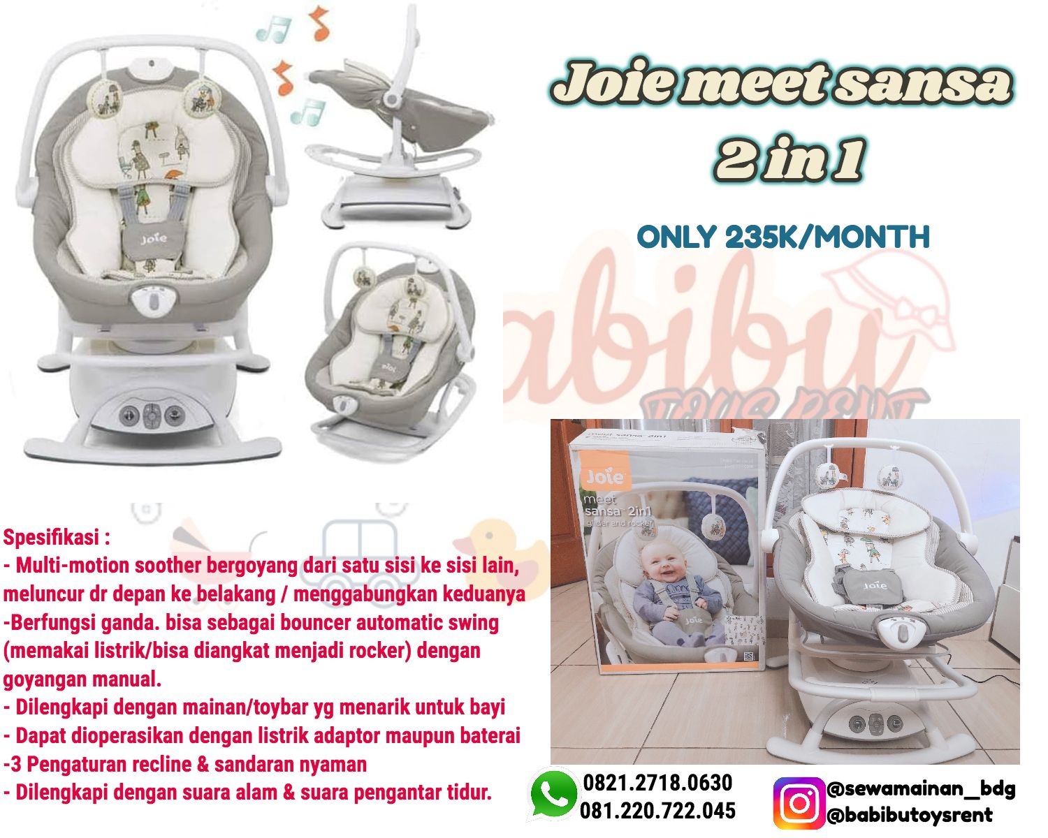 - Berfungsi ganda, bisa sebagai automatic bouncer swing / rocker manual.