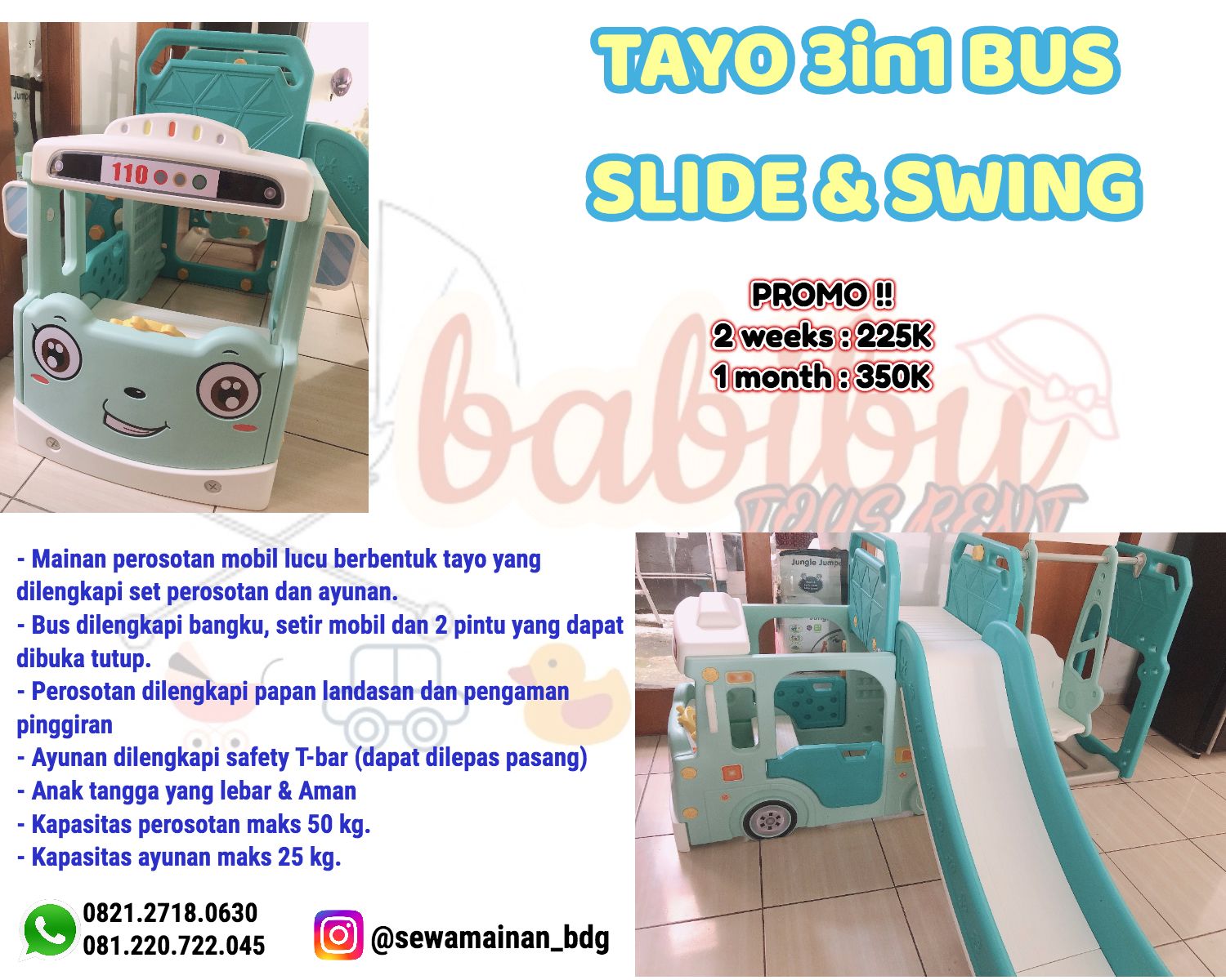 Mainan mobil yg lucu berbentuk tayo yg dilengkapi set perosotan & ayunan 🥰