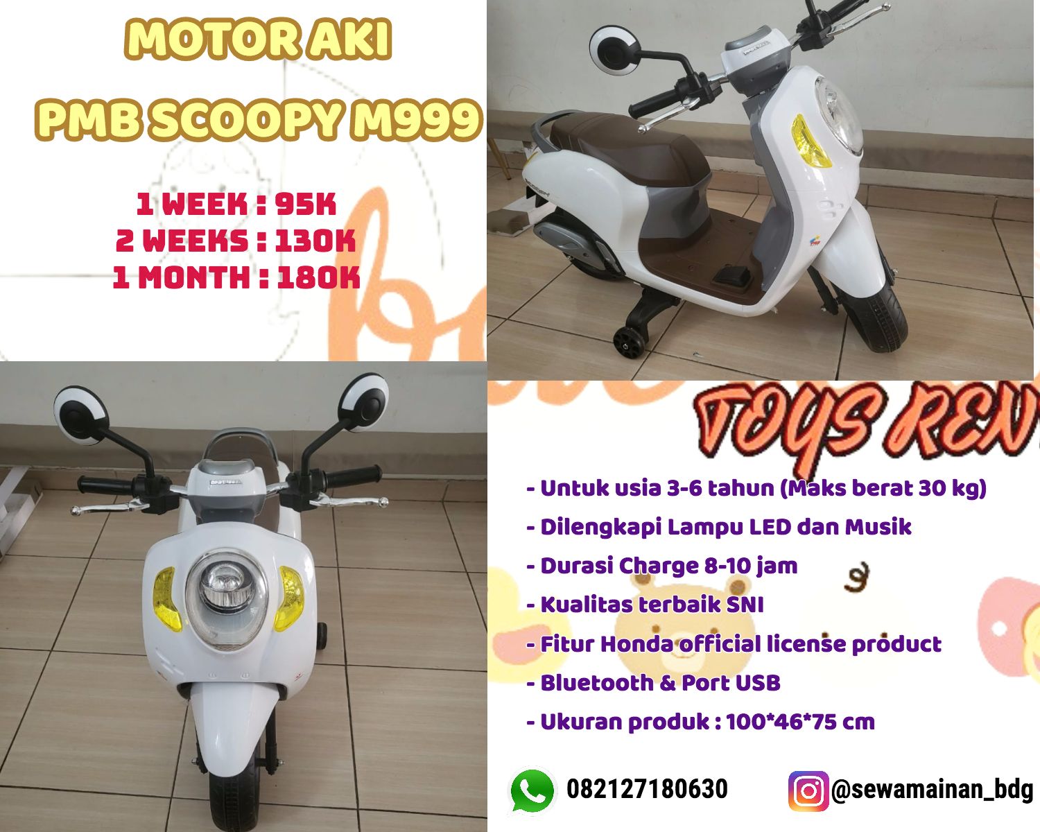 Motor Honda PMB M999 merupakan Honda Official Licensed Product lisensi resmi. Design Dashboard Sporty dengan Step Floor Lebih luas serta Baterai aku 6V7A.